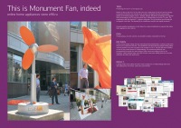 | Description | Within 22 days of July 2012 in the Urals even not a single drop of rain fell, and the average temperature of the first two months of the summer was higher than the corresponding figures at the world's biggest resorts - Antalya, Pattaya, Barcelona. According to the regional chief meteorologist, July 18 was the hottest day in Yekaterinburg in the last 75 years. The temperature that day reached 37.1 degrees centigrade. The city residents were literally left to languish in the heat. The demand for air conditioners and fans has rapidly increased. Unusual weather prompted us to the idea of a custom installation to promote the online home appliances store e96.ru. Decision: Perpetuating a very hot summer, we decided to build a three meter bright orange monument to the fan. |