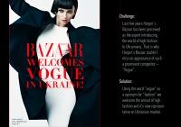 | Description | For last five years Harper’s Bazaar was perceived as the expert introducing the world of high fashion to Ukrainians. That is why Harper’s Bazaar couldn’t miss an appearance of such a prominent competitor – “Vogue”. Using the word “vogue” as a synonym for “fashion” we welcome the arrival of high fashion and it's new representative on Ukrainian market. |