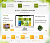 | Описание | Ситуация Весной 2013 года девелоперская компания UDP решила сделать Киеву подарок и высадить на Крещатике 100 каштанов. Задача Привлечь внимание киевлян к благородному проекту посредством интернета. Подход Мы решили не просто рассказать, а вовлечь, сделать интернет-пользователей активными участниками проекта. Решение Конкурс «Посади каштан вместе с UPD» с уникальным призом – собственным именным каштаном, который победитель посадит вместе с компанией. Как это было? Для проекта мы разработали сайт forkyiv.udp.ua/, применив интуитивно понятный метродизайн. Чтобы побороться за приз, пользователь заходил на сайт, авторизовался через соцсеть, включал вэб-камеру и фотографировал свою ладошку. Что и в каком порядке делать, пошагово подсказывали кнопки. Сделав фото (оно автоматически брендировалось), пользователь добавлял текст, постил ладошку в галерее проекта и у себя в социальной сети и собирал голоса. Чем больше – тем лучше. Авторы трех самых популярных работ уже получили свои каштаны. Рядом с каждым деревом установлены таблички с социальными никнеймами победителей – чтобы отныне все киевляне знали: этот каштан появился на Крещатике благодаря UDP и такому вот человеку. Результаты 1073 человека присоединились к нашему проекту; Из них 103 опубликовали фотографии своих ладошек; Все вместе они собрали 939 Like; 3 человека выиграли именные каштаны, еще 100 – поощрительные призы; И главное: конкурс длился всего 10 дней!  |