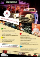 | Описание | Скажем "прощай" советскому стилю и сервису, "прощай" затёртым коврам, потерянным чемоданам, дерзким администраторам и вывескам "свободных номеров нет". Добро пожаловать в новую эпоху умных и стильных решений, где есть место инновациям и красивым вещам. Где самая важная ценность - это ваш комфорт и время. Ведь именно такими качествами должен обладать современный сервис. Добро пожаловать в новый Azimut смарт-отель. Добро пожаловать в настоящее! |