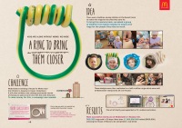 | Описание | Задача Макдоналдс строит дом для мам рядом с детской больницей в Казани, чтобы дети, проходящие длительное лечение, не расставались со своими близкими. Необходимо было помочь собрать деньги на строительство дома. Решение В Советском Союзе у детей была традиция плести колечки из проволоки для тех, кого любишь. Мы решили напомнить взрослым об этой традиции и попросили детей из казанской больницы сплести колечки для людей, по которым они скучают больше всего. По этим эскизам было сделано более полумиллиона колечек, которые продавались в ресторанах Макдоналдс по всей России. Акция поддерживалась на телевидении, в Интернете и в наружной рекламе. Результат - Благотворительная акция оказалась самой успешной за всю историю российского Макдоналдс. - За 20 дней продано 505200 колечек - Собрано более 17 000 000 рублей, что позволит сдать Дом в июле 2013 г |