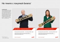 | Описание | Основная цель: проинформировать широкую аудиторию о нововведениях в ценовой политике транспортной компании. Суть ее заключается в разнице стоимости билета в зависимости от даты покупки. То есть, чем раньше пассажир приобретает билет, тем выгоднее ему обходится поездка. Креативным решением поставленной задачи стало обыгрывание устойчивого выражения «не тяни резину» - протянешь с покупкой билета – цена будет выше. |
