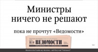 | Описание | Деловое издание «Ведомости» – это источник важной и объективной деловой информации, материалы в котором помогут принять верное бизнес-решение. Мы доносим эту мысль при помощи провокационных сообщений, в которых обыгрываем российскую реальность, где даже представители власти и крупного бизнеса не принимают самостоятельных решений без одобрения Кремля. |