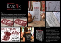 | Описание | Задача Разработать логотип и фирменный стиль для турецкого кафе "Бардак" в Москве. Познакомить с турецкой национальной кухней. Сохранить в рамках стиля национальный колорит, но обойтись без привычных для восточных кафе элементов. Дать гостям представление о турецкой кухне и традициях, находящихся за пределами отелей и курортов. И, конечно, поделиться радостью и гостеприимством. Решение В логотипе реализована пара "made in Turkey" и традиционная турецкая джезва, более известная в России как "турка". Стиль решен на основе сложившегося представления русских о Турции и о турках. Разработан шрифт, отображающий турецкое гостеприимство и радушный восточный прием гостей. Иллюстрации традиционных турецких предметов интерьера на сетах (бумажных салфетках), в меню и остальных носителях дополняют уютную и колоритную атмосферу кафе. Официантами работают русскоговорящие турки, исходя из чего и была решена униформа персонала. В рамках проекта разработано руководство по использованию фирменного стиля, фасада, навигация и внутренняя документация. |