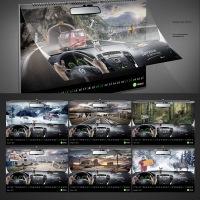 | Описание | Имиджевый календарь для компании «GRASS» - российского производителя профессиональной автохимии и автокосметики. Первая страница календаря представляет собой вид из салона автомобиля, напечатанного на прозрачной пленке, которая выступает в роли стекла. Через него просматриваются, сменяющие друг друга, 12 оригинальных дорожных сюжетов. Разные дороги, один автомобиль. «GRASS» - «Движение в чистом виде». |