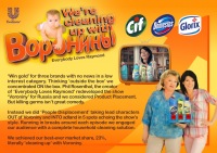 | Опис | The brief: “win gold” for three brands with no news in a low interest category. Thinking “outside the box” we concentrated ON the box. Phil Rosenthal, “We all love Raymond’s” creator, redeveloped the show “Voroniny” for Russia and we considered Product Placement. But killing germs isn’t great comedy. Instead we did ‘People Displacement’ taking lead characters OUT of Voroniny and INTO adland in 5 spots echoing the show’s style. Running in breaks around each episode we engaged our audience with a complete household cleaning solution. We achieved our best-ever market share, 23%, literally ‘cleaning up’ with Voroniny. |