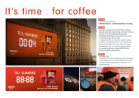 | Опис | Утро, особенно в осенне-зимний период, — это наиболее жизнерадостное время суток, когда можно успеть сделать много приятных и полезных дел. Если, конечно, не проспать его и окончательно “проснуться” (с чем, впрочем, легко поможет справиться NESCAFE Classic). Чтобы акцентировать на этом внимание, мы инсталировали на брандмауер огромный таймер, отсчитывающий время до рассвета. Учитывая, что людям свойственно в предвкушении чего-то приятного считать оставшиеся часы и минуты, то ожидание нового дня и ожидание чашки любимого и бодрящего NESCAFE Classic непринужденно слились в одной истории. |