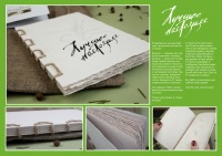 | Опис | В надежде на лучшее будущее, не упускай лучшее настоящее. Блокнот — подарок для клиентов компании «Зеленая долина» — крупного поставщика свежей зелени в вакуумной упаковке. Блокнот, изготовленный из многослойной бумаги ручной работы с настоящими листьями тархуна и горчицы, аккуратно переплетен льняным шпагатом. Каждый из 57 экземпляров блокнота уникален. Не содержит ГМО, консервантов и искусственных красителей! Только настоящее, и только лучшее! |
