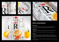 | Опис | Предыстория: В прошлом году компания «Мултон» (Coca-Cola) отказалась от ТВ-рекламы и стала активнее использовать упаковку и переключилась на работу с лимитированными сериями. Задача: Разработать дизайн упаковки для ограниченной серии сока Rich, которая должна была проинформировать потребителей о запуске нового вкуса и отличаться от основной продуктовой линейки Решение: В основу дизайна упаковки положена креативная платформа бренда, которая заключается в том, что будничные ситуации вдруг оборачиваются яркими моментами, потому что вкус сока Rich дает возможность почувствовать жизнь во всей ее насыщенности. Для оформления ограниченной серии новой упаковки сока Rich была выбрана стилистика записей в блокноте. |