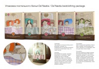 | Опис | Проблема: При выборе постельного белья часто возникает ситуация, что изображенная на упаковке расцветка не вполне соответствует тому, что лежит внутри. Решение: Мы разработали дизайн упаковки, решающий эту проблему. Через прозрачное окно в упаковке потребитель видит, что покупает. Персонажи на упаковках в прямом смысле укрыты именно тем бельём, которое находится в пачке! Таким образом, товар является частью дизайна упаковки. |