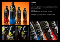 | Опис | Tornado Предыстория: Целевую аудиторию энергетических напитков интересует не только вкус, но и оригинальный привлекательный внешний вид, так как потребление продукта зачастую происходит на вечеринках, где нужно выглядеть круто. Существующая упаковка Tornado выглядела дешево и не привлекательно для ЦА. Задача: Разработать новую концепцию дизайна упаковки, добавив стильности и чувство юмора. Решение: Для бренда был разработан логотип в виде торнадо, напоминающий дорожный знак. Дополненный забавными пиктограммами и слоганами, соответствующими каждому из 4 вкусов. |